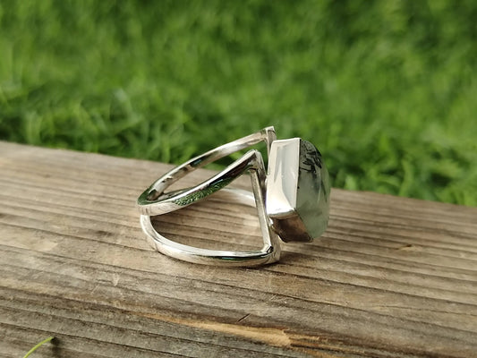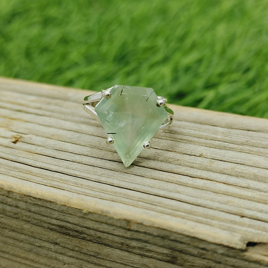 Prehnit Diamant Form Natürlicher Edelstein Ring-925 Sterling Silber Ring-Handgefertigter Boho Ring- Prehnit Ring-Geschenke für Sie-Statement Ring