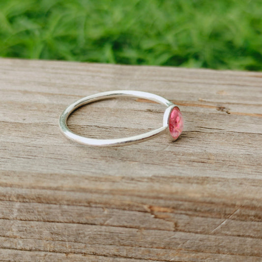 Rosa Glasstein 925 Sterling Silber Ring, Glasstein, Boho Ring, Silberring, zierlicher Ring, minimalistischer Ring, Ring als Geschenk für Frauen,