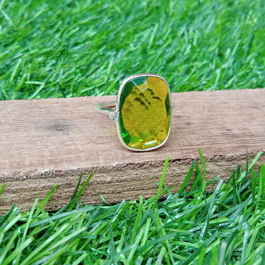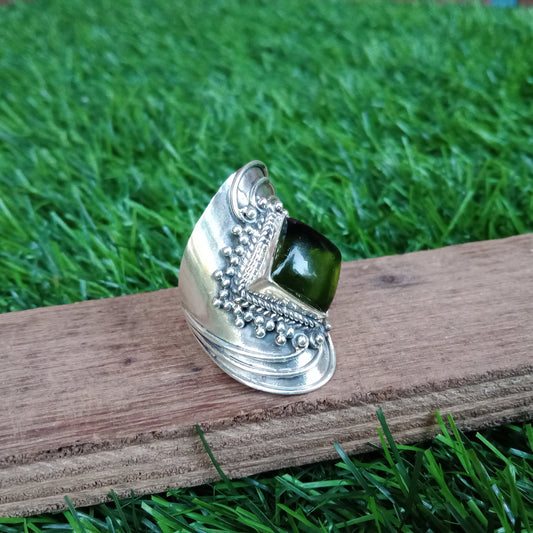 Peridot Glasstein 925 Sterling Silber Ring, Glasstein Ring, Boho Ring, Silber Ring, zierlicher Ring, Großer Ring, Geschenk für Frauen