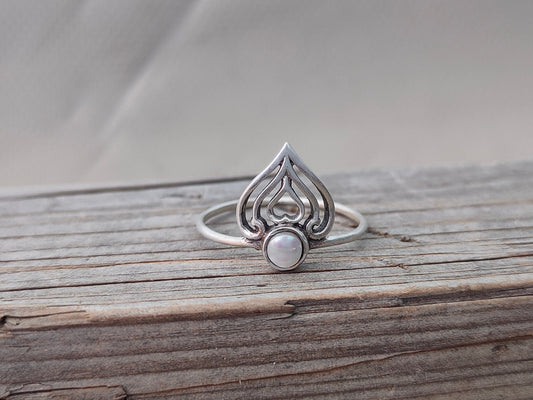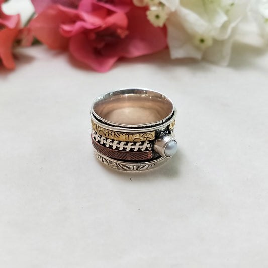 Perlenstein-Spinner-Bandring, Sterling-Silber-Bandring, Einzigartiger Silberring, handgefertigter Silberring, Boho-Band, Band, Silberring