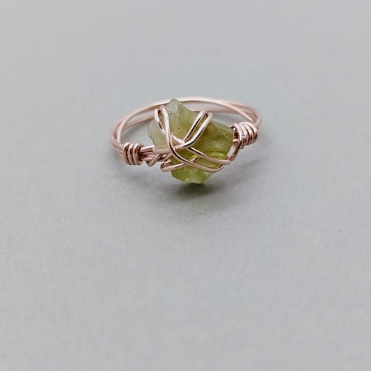Peridot Silberring mit Roségold plattiert, Sterling Silber Ring, Statement Ring, handgefertigter Silberring, Peridot Drahtring, Rohstein