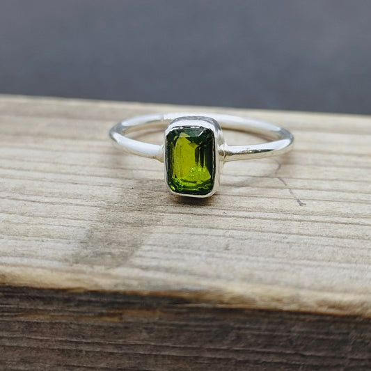Peridot Glasstein 925 Sterling Silber Ring, Glasstein, Boho Ring, Silberring, zierlicher Ring, Minimalistischer Ring, Geschenk für Frauen
