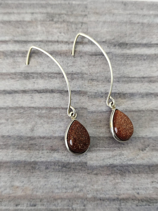 Brown Sunstone bezel earrings , silver earrings , Handmade hanging earring , statement earring , silver jewelry , earring , 925 silver gift