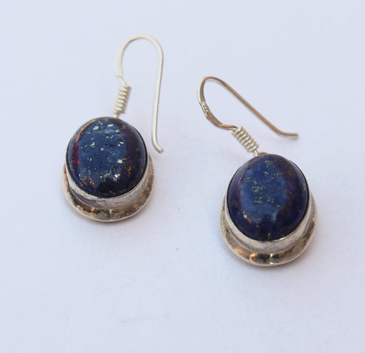 Lapis Sterling Silver Handmade Earring | Lapis Lazuli Stone | Daily Wearable Earrings in Oval Shape | Bezel Earrings Gift for Her