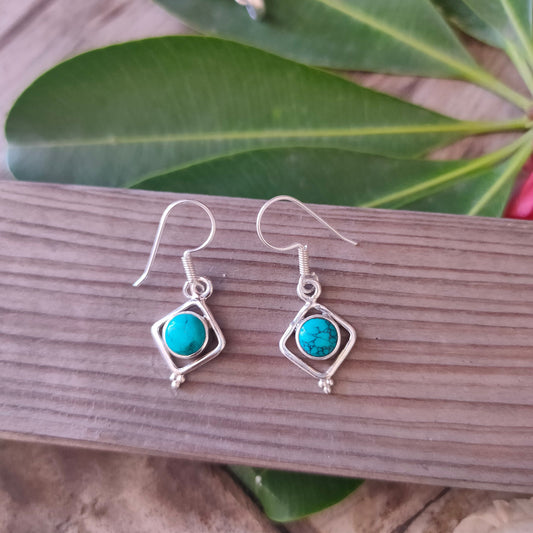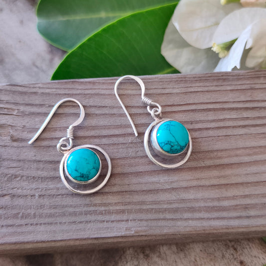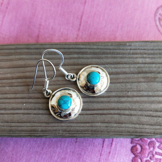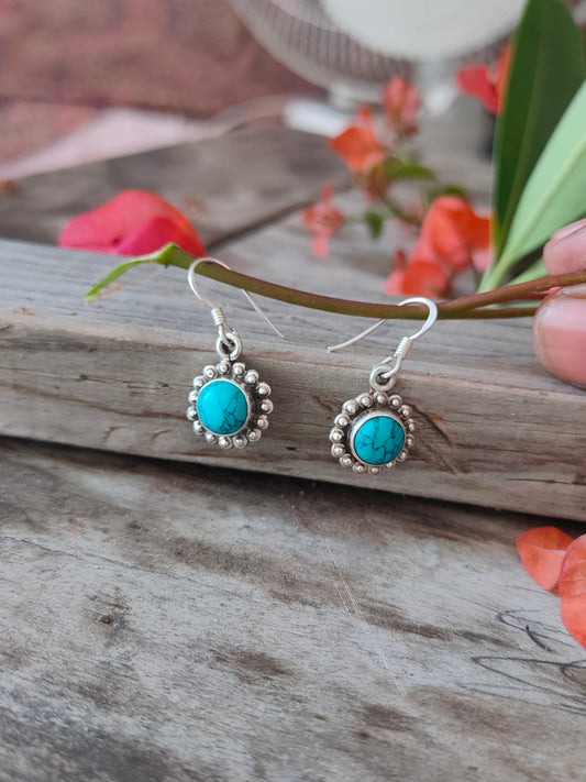 Turquoise Sterling Silver Handmade Earring | Turquoise Stone | Round Shape | Silver Earrings | Boho Earrings Gift for Her