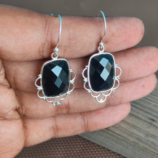 Black Onyx Sterling Silver Handmade Earring Black Onyx stone Daily wearable Earrings in Square Shape Boho Earrings Gift for Her