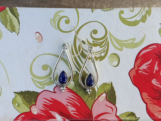 Lapis Sterling Silver Handmade Earring | Lapis Lazuli Stone | Daily Wearable Earrings in Pear Shape | Bezel Earrings Gift for Her