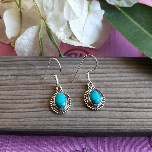 Turquoise Sterling Silver Handmade Earring | Turquoise Stone | oval Shape | Silver Earrings | Boho Earrings Gift for Her