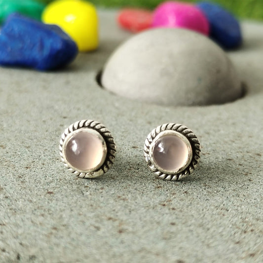 Rose quartz StudEarrings, 925 Silver Studs , Minimal, Bohemian Jewelry, Sterling Silver Tiny Round Pink Studs, Simple Earrings ,Studs,Gift