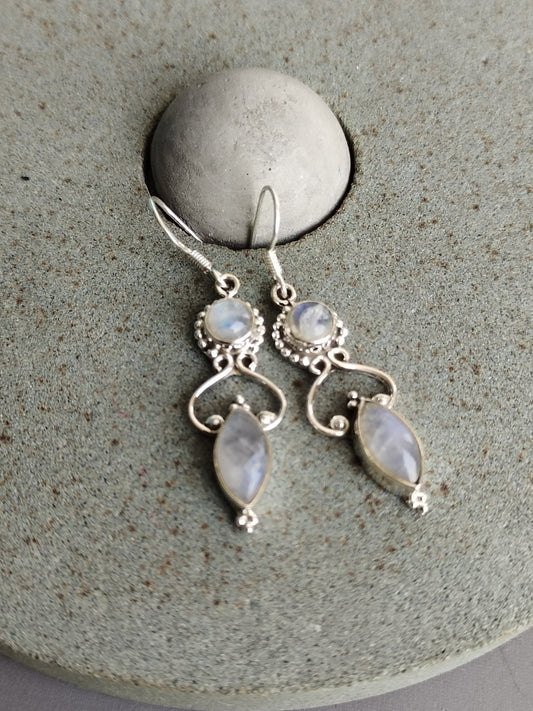 Rainbow Moonstone 925 Sterling Silver Handmade Earring Rainbow Moonstone Oval Shape Silver Earrings Boho Earrings Gift for Her
