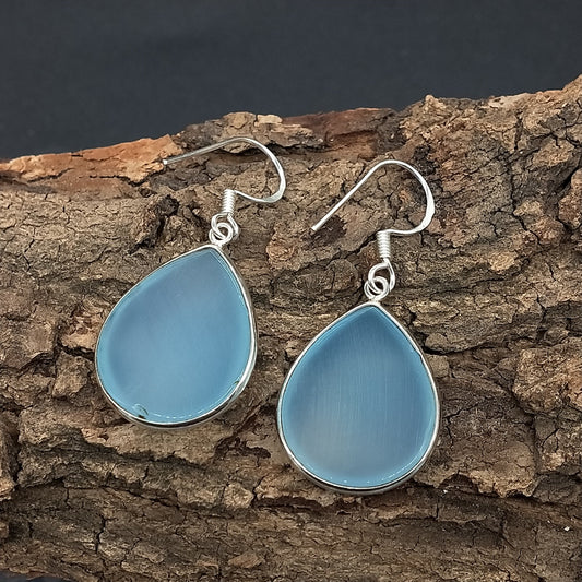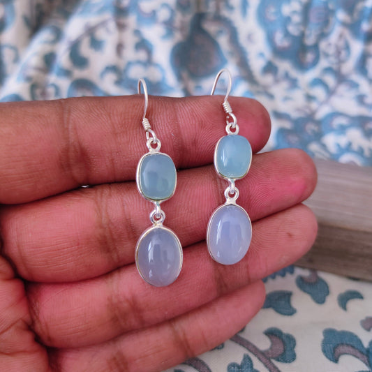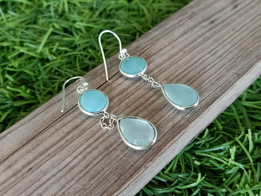 Aqua Blue Calcy Sterling Silver Handmade Earring |Aqua Blue Calcy Stone long earrings - Earrings - Gift for Her - 925 silver earrings