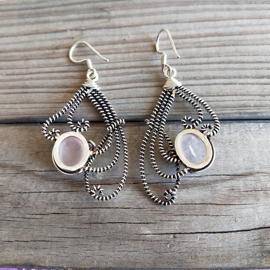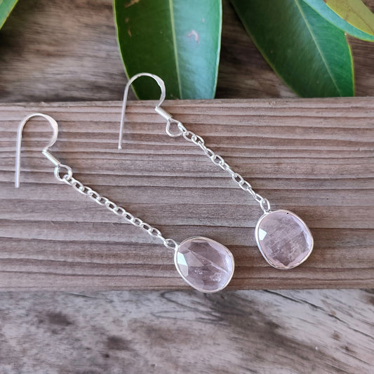 Rose Quartz Sterling Silver Handmade Earring | Rose Quartz Stone | Daily wearable Earrings | Chain Earrings | Boho Earrings Gift for Her