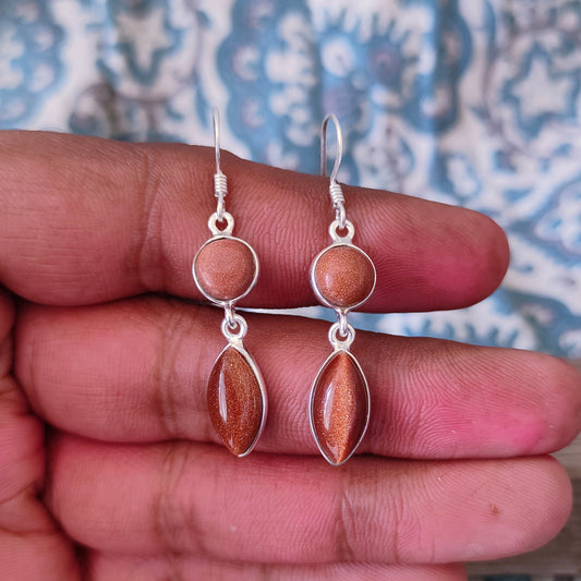 Sunstone Sterling Silver Handmade Earring Sunstone Daily wearable Earrings in Round Shape Bezel Earrings Gift for Her