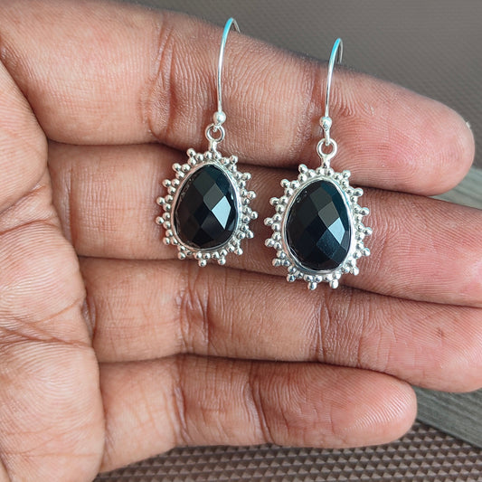 Black Onyx Sterling Silver Handmade Earring Black Onyx stone Daily wearable Earrings in Pear Shape Boho Earrings Gift for Her