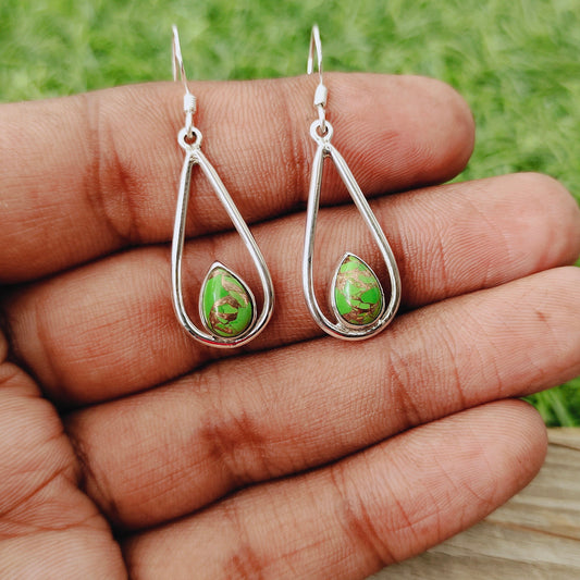 Copper Green Turquoise Sterling Silver Handmade Earring |Copper Turquoise Stone| Daily Wearable Earrings in Pear Shape |Bezel Earrings Gifts