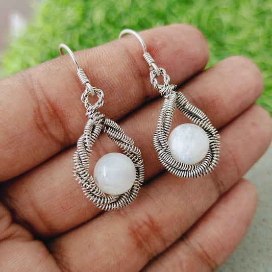 Rainbow Moonstone Earring - 925 Sterling Silver Handmade Earring - Moonstone Round Shape Silver Earrings - Boho Earrings - Gift for Her