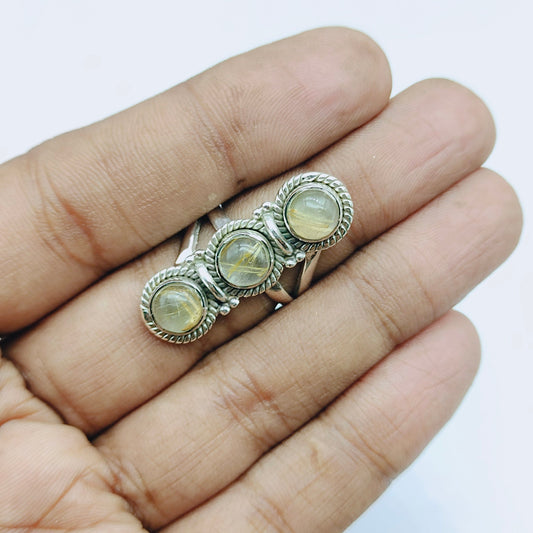 Golden Rutile triple stone ring , Handmade silver ring , 925 sterling silver ring ,silver ring, hand crafted silver ring, middle finger ring