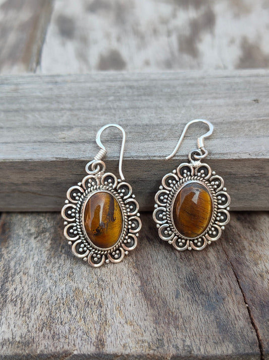 925 Tiger Eye Sterling Silver Handmade Earring Tiger Eye stone Daily wearable Earrings in Oval Shape Boho Earrings Gift for Her