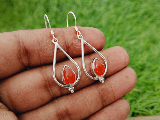 Carnelian 925 Sterling Silver Handmade Earring Carnelian Stone Daily wearable Earrings in Pear Shape Earrings Gift for He - Orange Earrings