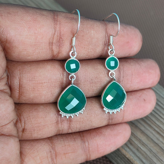 Green onyx sterling silver earrings , handmade silver earrings , dainty earrings , silver earrings , silver jewelry , Christmas gift