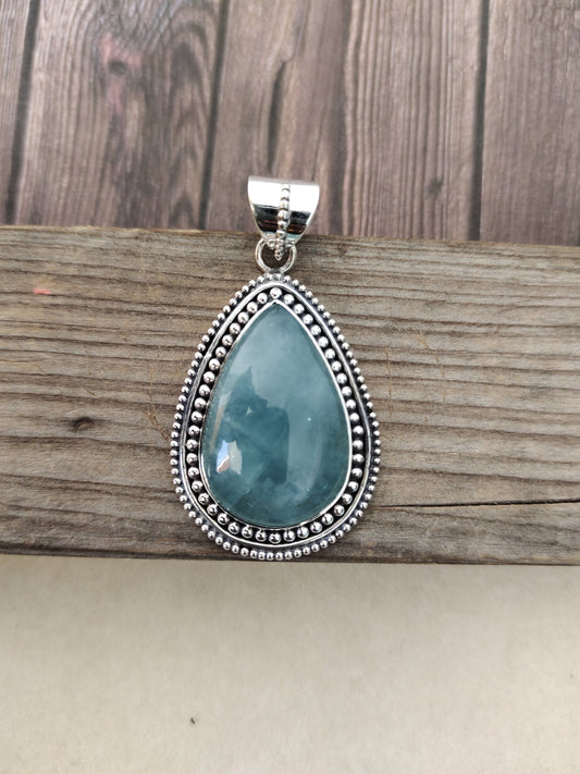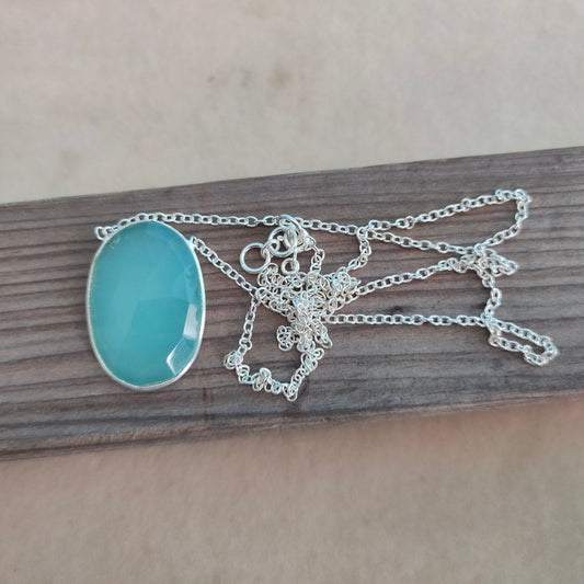 Aqua Calcy Necklace, 925 Sterling Silver, Beautiful Aqua pendant, Aqua Calcy pendant, Boho, Drop Necklace, Gift for her, Handmade