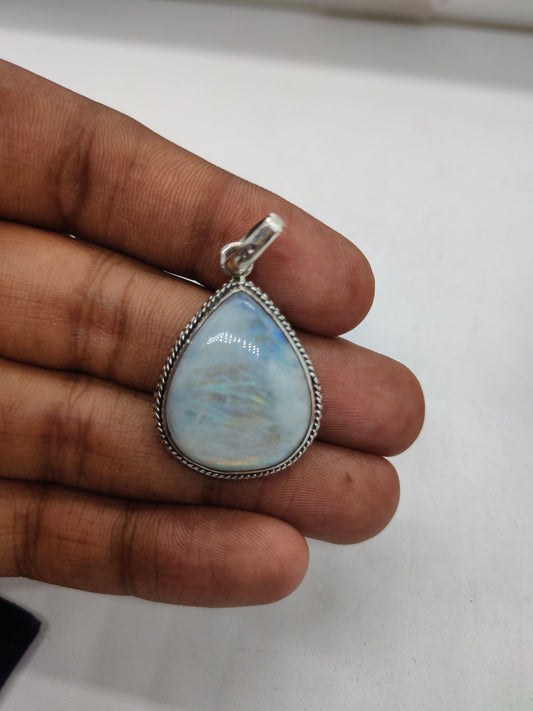 Rainbow Moonstone Pendant in Solid 925-Sterling Silver | Gorgeous Handmade Rainbow Moonstone Pendant | Boho Pendant Gift for Her