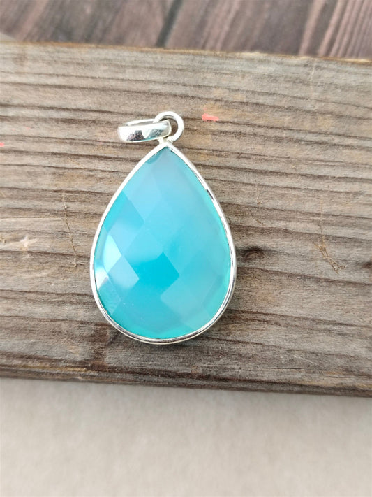 Aqua Calcy Necklace, 925 Sterling Silver, Beautiful Aqua pendant, Aqua Calcy Faceted pendant, Boho, Drop Necklace, Gift for her, Handmade