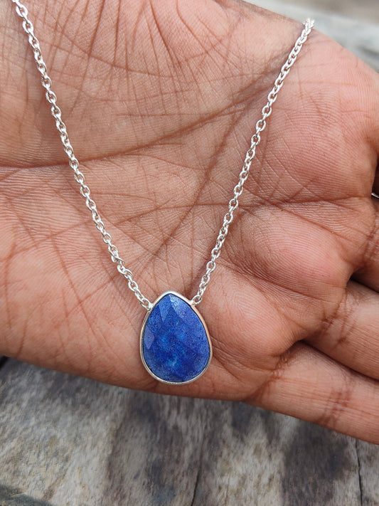 Lapis Necklace, 925 Sterling Silver Jewelry, Beautiful Blue pendant, Lapis Faceted pendant , boho, drop necklace, Gift for her, Handmade