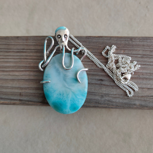 Larimar stone octopus designed necklace , handmade octopus pendant , Larimar pendant , natural larimar stone pendant , design pendant