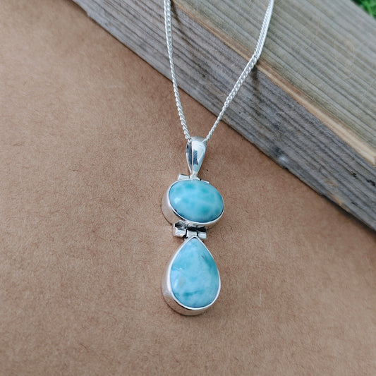 Larimar Two stones Beautiful designed necklace , handmade Beautiful pendant , Larimar pendant ,natural larimar stone pendant ,design pendant