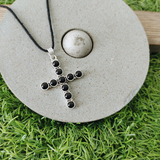 Black onyx Pendant , Cross Silver Pendant , 925 Silver Pendant , Silver Religious Pendant , Jesus Cross Pendant , Gemstone Pendant , Pendant