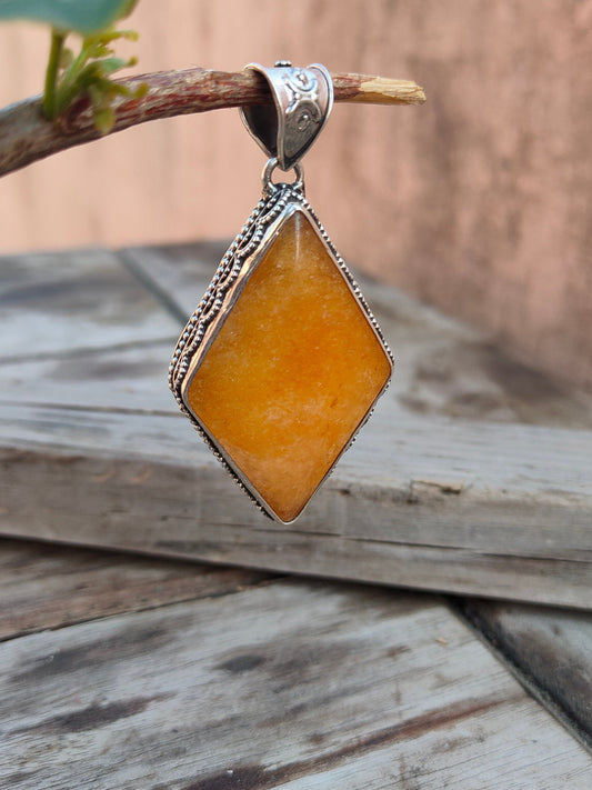 Handmade Yellow Lace Agate Pendant of Solid 925 Sterling Silver, Beautiful Yellow Lace Agate Pendant, Boho Pendant Gift for her