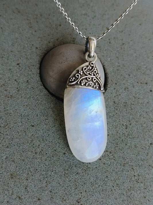 Rainbow Moonstone Pendant in Solid 925-Sterling Silver | Gorgeous Handmade Rainbow Moonstone Pendant | Boho Pendant Gift for Her