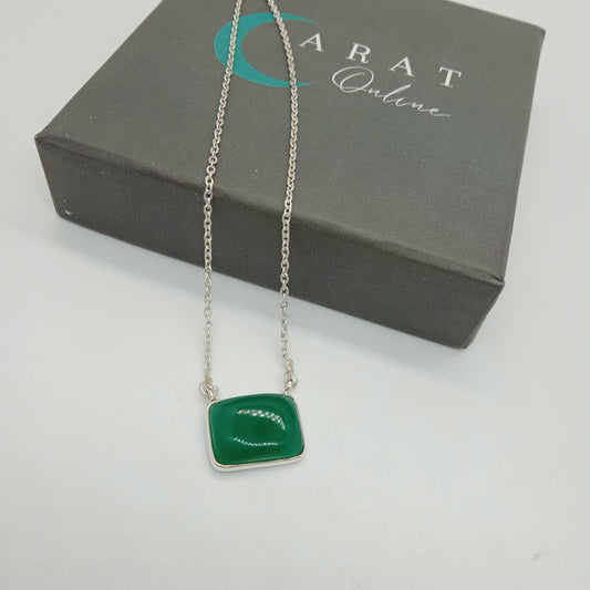 Green Onyx Necklace, 925 Sterling Silver, Beautiful Onyx necklace, Boho jewelry, Green onyx 925 silver necklace, Gift for her, Handmade