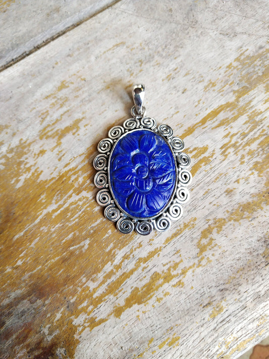 Lapis Pendant in Solid 925-Sterling Silver | Gorgeous Handmade Carved Lapis Pendant | Boho Pendant Gift for Her minimalist summer jewelry