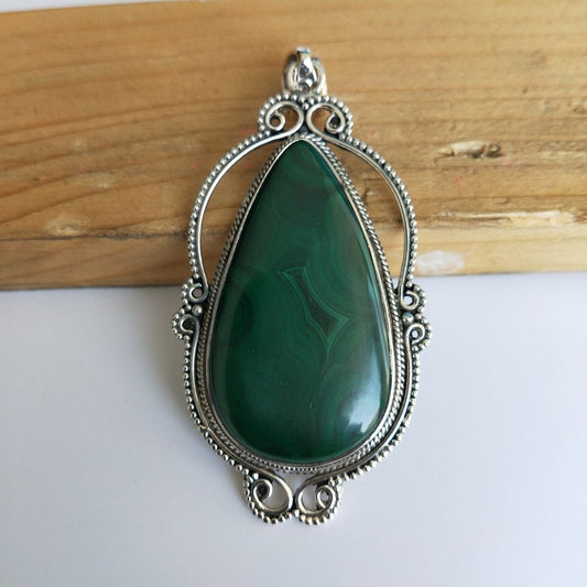 Malachite Pendant in Solid 925-Sterling Silver | Gorgeous Handmade Malachite Pendant , big size pendant , boho pendant , long pendant ,gift