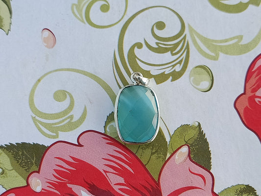 Handmade Aqua Calci Pendant of Solid 925 Sterling Silver, Beautiful Aqua Calci Pendant, Boho Pendant Gift for her- Blue Pendant