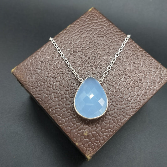 Aqua Calcy Necklace, 925 Sterling Silver, Beautiful Aqua pendant, Aqua Calcy Faceted pendant, Boho, Drop Necklace, Gift for her, Handmade