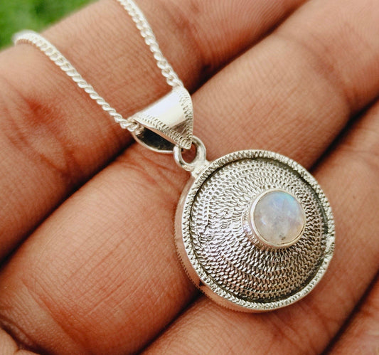Rainbow Moonstone Pendant ,Solid 925-Sterling Silver,Gorgeous Handmade Rainbow Moonstone Necklace mothers day gift,handmade silver pendant