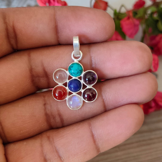 Handmade pendant of 7 stone , Multiple Stone pendant , Sterling Silver Pendant , Bohemian Pendant for girls , 925 Sterling silver , Pendants