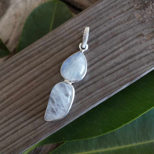 Rainbow Moonstone Dual stone Pendant in Solid 925-Sterling Silver | Gorgeous Handmade Rainbow Moonstone Pendant | Boho Pendant Gift for Her