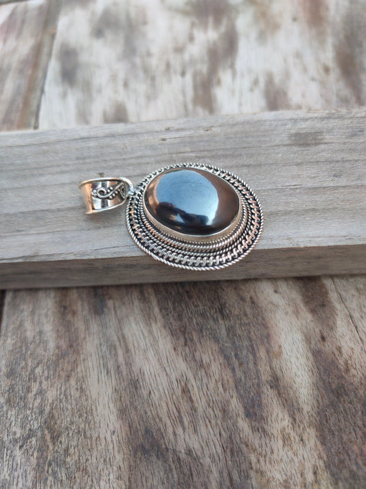 Handmade Hematite Pendant of Solid 925 Sterling Silver, Beautiful Hematite Pendant in Oval Shape, Boho Pendant Gift for her