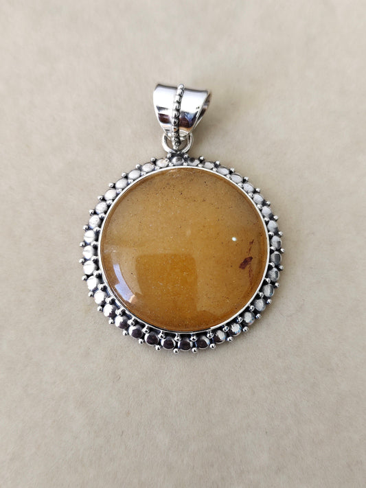 Yellow Lace Agate Pendant in Solid 925-Sterling Silver | Gorgeous Handmade Yellow Lace Agate Pendant | Boho Pendant Gift for Her