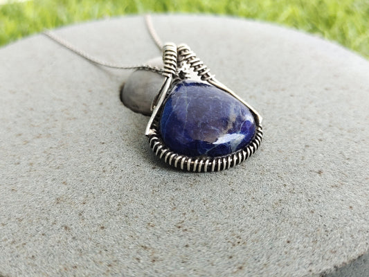 Natural Sodalite Gemstone pendant , handcrafted bohemian pendant , Sodalite pendant , Pear designed pendant , big size pendant , bohemian
