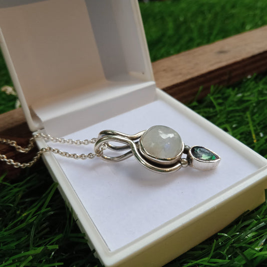 Moonstone and Mystic Quartz Sterling silver Pendant, handmade pendant, Moonstone and Mystic Quartz pendant, DualStone Pendant,Gift for Women