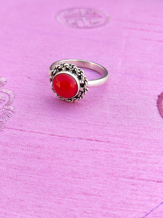 Boho Statement Ring -Coral stone Sterling Silver Ring - Hand Crafted Bohemian Ring - Bohemian Ring Coral Ring - Rings - Gift for minimalist