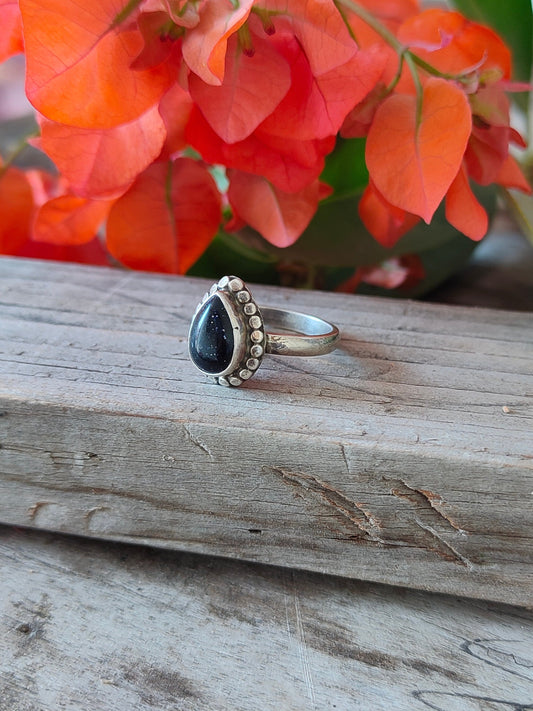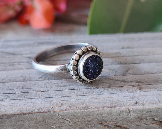 Boho Statement Ring -Blue Gold Stone Sterling Silver Ring - Hand Crafted Bohemian Ring -Bohemian Ring -Blue Gold Stone Ring-Rings - Gift for