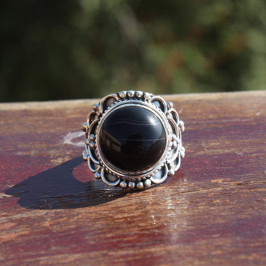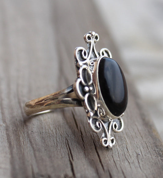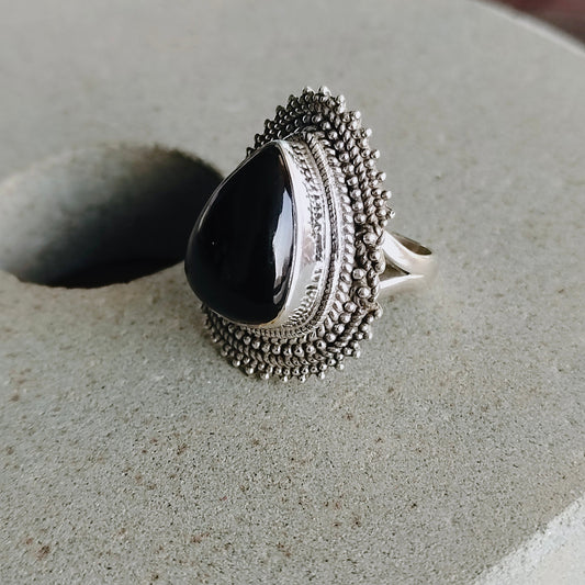 Boho Statement Ring -Black Onyx Stone Sterling Silver Ring - Hand Crafted Bohemian Ring - Bohemia Black Onyx stone Ring - Rings - Gift for