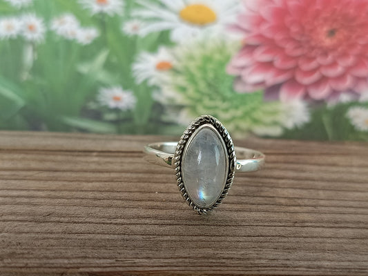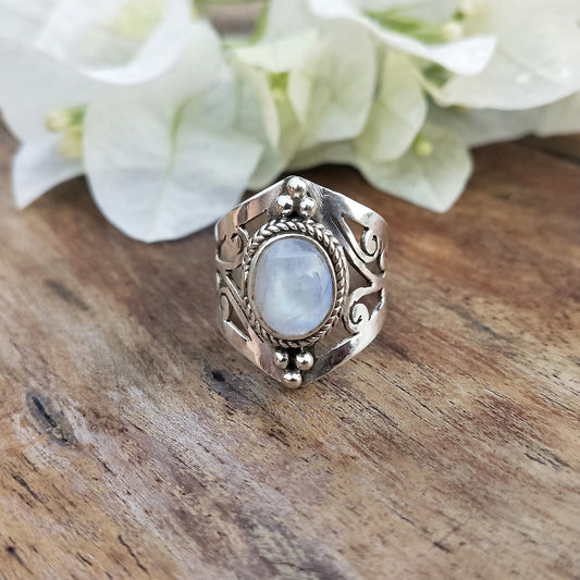 Boho Statement Ring -Rainbow Moonstone Sterling Silver Ring-Hand Crafted Bohemian Ring-Bohemian Ring-Rainbow moonstone Ring -Rings -Gift for