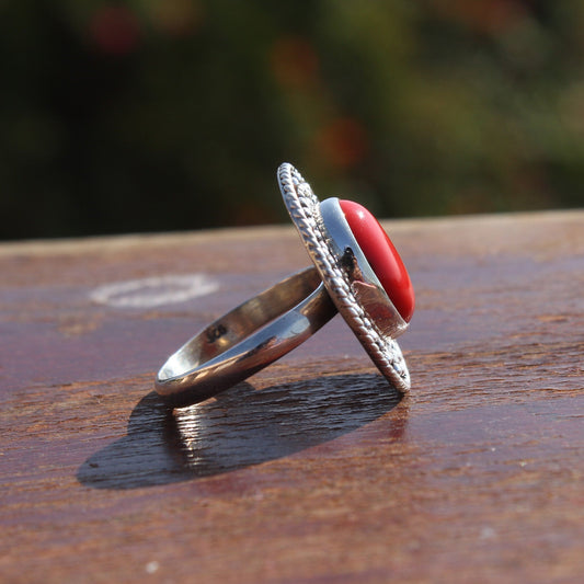 Boho Statement Ring -Coral stone Sterling Silver Ring - Hand Crafted Bohemian Ring - Bohemian Ring Coral Ring - Rings - Gift for